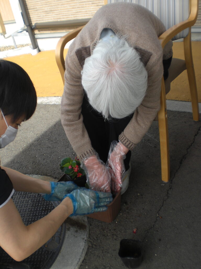 🌷花の植え替え🌼 2021.06.3 小規模多機能ホームふきのとう小鳥沢 6月半ば天気にも恵まれ玄関先で植え替えを行いました。皆様に教えてもらいながら花の数、並びを一緒に決め、一気に玄関が華やかになりました。🌹これから水やりやお散歩が楽しみです! Tweet 投稿者: ふきのとう 小規模多機能ホームふきのとう小鳥沢 ふきのとう新聞令和3年6月号前の記事 🌞5月5日はこどもの日!🎏次の記事