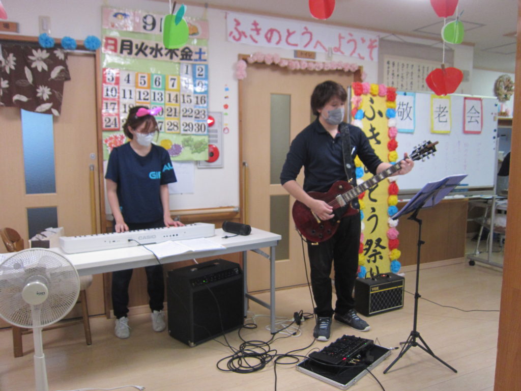 職員による弾き語り「Let it be」「上を向いて歩こう」も、うっとりとした表情で聞いていました