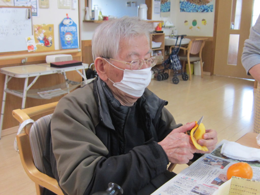 「この包丁切れねーじゃ」と言いつつも慣れた手つきで上手にむいています!
