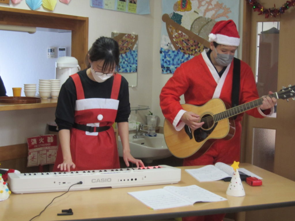 続いて職員の演奏に合わせてクリスマスソングを歌いました♪