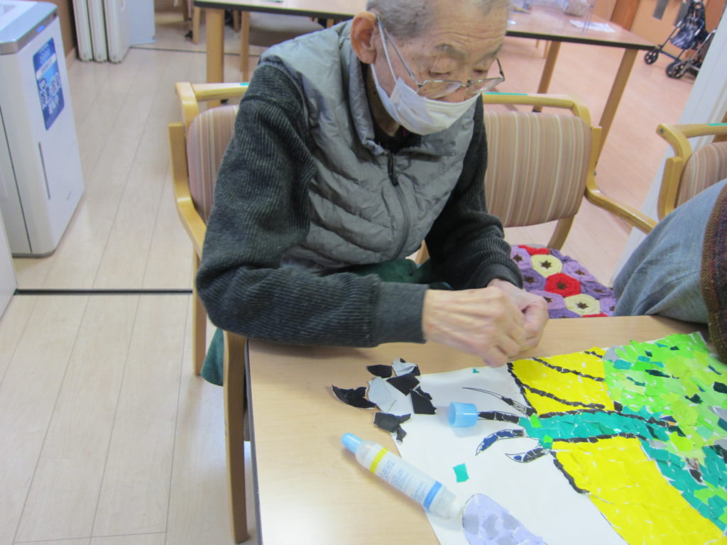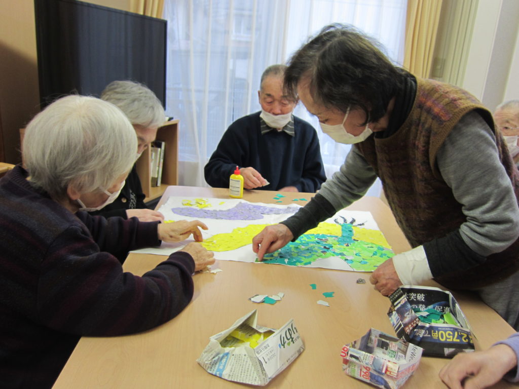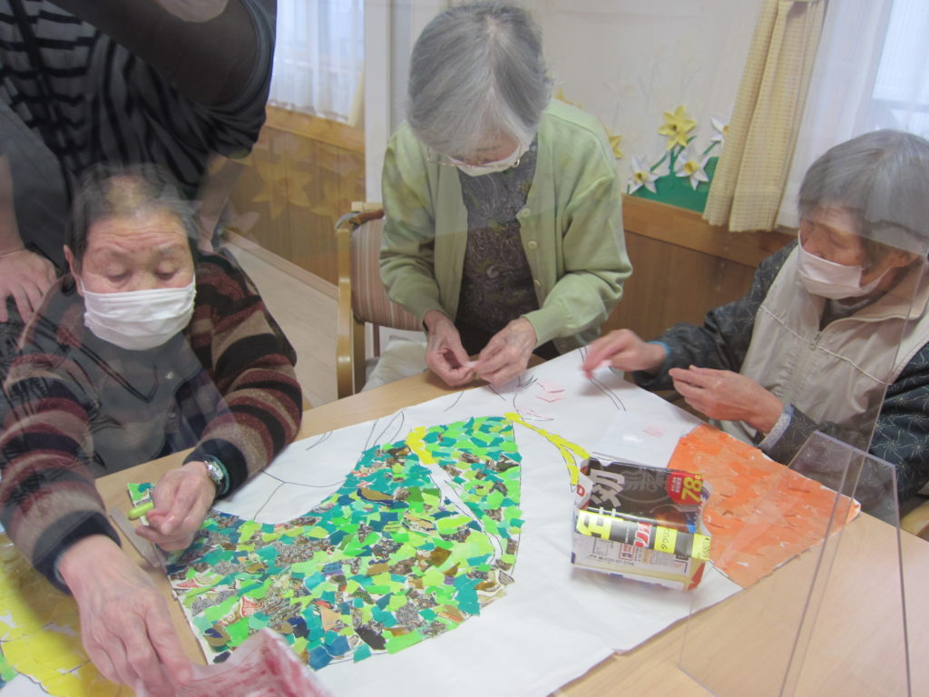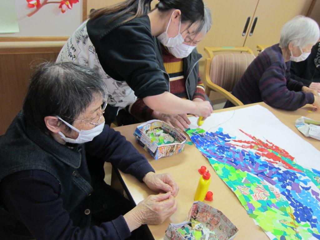 色ごとに折り紙を張っていく皆様。集中して黙々と取り組みます。