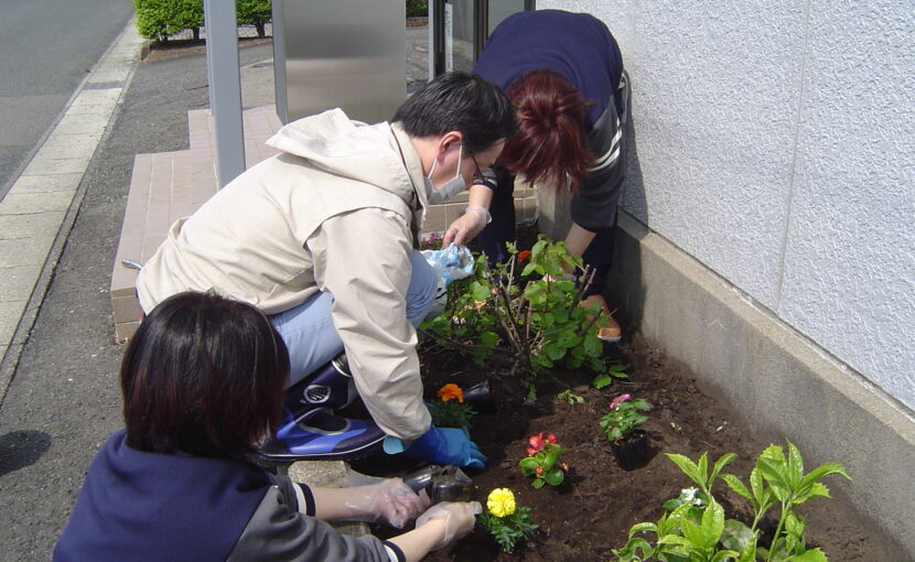 花壇に花を植えました。