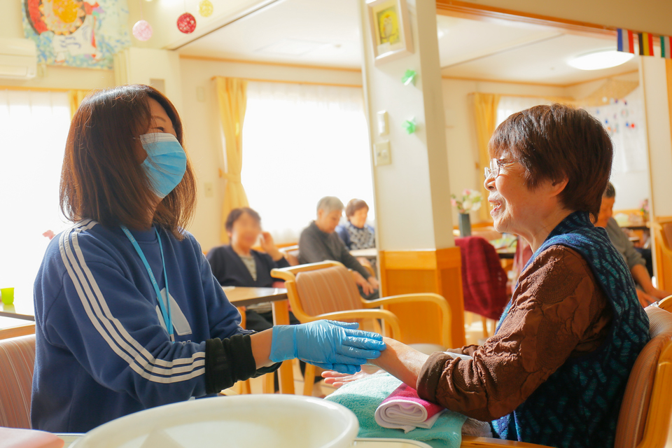ふきのとう小鳥沢 デイサービスふきのとう小鳥沢 通所介護・第1号通所介護 個人にあわせた運動メニューによって、楽しみながら機能回復が促されるようサポートいたします。運動によって機能の維持・改善をはかり、心身ともに元気になっていただければと思っているのです。エクササイズを行い、ゆったりと休みながらおしゃべりも楽しんでいただく。そうしたことの積み重ねが、ご本人にもご家族にもイキイキした生活を送っていただけることにつながると信じています。 通所介護(デイサービス)とは? 日中、デイサービスセンターに通っていただき、日常生活上のお世話や機能訓練を行うサービスです。日帰りで通っていただき、入浴・食事のご提供・介護、生活等についての相談・助言、健康状態確認といった日常生活上のサービスや、機能訓練やレクリエーションなど趣味活動を行うサービスです。ご自宅から施設まで送迎いたします。施設内で生活相談員・介護職員・看護職員・機能訓練指導員などが、サービスをご提供いたします。 住宅型有料老人ホーム笑家 イキイキ過ごせる環境へ 笑家の建物は、明るく柔らかい雰囲気を作るために木材をふんだんに使って作りました。木の香りとアットホームな雰囲気で、居心地のいい、心からイキイキ過ごせる環境にしております。 住宅型有料老人ホーム笑家とは? 要支援、要介護認定を受けた方が入居している住宅型有料老人ホーム。笑家では入居者がみんなで楽しめるようにレクリエーションやイベントを充実させています。スタッフは日々のレクリエーションを共に楽しみ、利用者様が笑顔でいることで毎日の活力にしてもらえるよう努めています。 ふきのとう小鳥沢の3つのポイント 明るく笑顔で生き生きライフ 一日中笑い声が響きます、季節ごとの行事の他に脳トレ、昭和回想法、カルチャースクール、開所から続いている畑づくりなど。常にご利用者様が楽しみ満足していただける活動を行っています。 懐かしさを感じる空間 アットホームな雰囲気の中で、香りとまな板で野菜を切る音が「昔を思い出すね」「ここに来るとなんかホッとするね」と会話が聞こえてきます。採りたての野菜、山菜、きのこなど季節感あふれる食事が喜ばれています。 癒しの空間 ふきのとう独自のサービス、アロマセラピーは一対一で寄り添い会話を楽しみ、心も体もリラックスできる大人気のサービスです。 統括施設長 野場恵里子より 日頃より、ふきのとう小鳥沢へあたたかいご理解とご支援を賜り心から感謝いたします。平成18年に開所し、ご利用者様と職員が共にふきのとうに来て良かったと思えるよう、そしてイキイキと過ごせる環境づくりに努めて参りました。これからも、ふきのとうのあたたかい雰囲気を継続しこの地域の中で皆様のご支援を頂きながら成長していけるよう、職員一同努力して参りますので、今後ともどうぞよろしくお願い申し上げます。 ご利用料金 デイサービス(令和3年4月1日改定) 区分基本料/7時間以上8時間未満入浴料合計介護職員処遇改善加算Ⅰ 要支援1週1回程度384円/回数月4回の場合1,536円(月)介護サービス費に5.9%加算した額要支援1月4回超の場合1,672円(月)1,672円(月)要支援2週2回程度395円/回数月8回の場合3,160円(月)要支援2月8回超の場合3,428円(月)3,428円(月)要介護1655円(日)40円(日)695円(日)介護サービス費に5.9%加算した額要介護2773円(日)40円(日)813円(日)要介護3896円(日)40円(日)936円(日)要介護4 1,018円(日)40円(日)1,058円(日)要介護51,142円(日)40円(日)1,182円(日) ※新型コロナウィルス感染症に対応する為の特例的な評価として、全てのサービスについて、令和3年9月末までの間、基本報酬に0.1%上乗せする。 ショートステイ 一泊料金食材費(夜・朝)合計 2,750円756円3,506円 ※デイサービス19:30まで利用後のショートステイとなります。※暖房費として10月〜4月の間は一泊220円別途必要となります。 住宅型有料老人ホーム笑家(令和元年10月1日改定) 月額利用料 居室料30,000円管理費21,600円光熱水費11,000円食材費(30日)38,880円合計101,480円 ※入居時、保証金として18万円お預かりさせていただきます。※暖房費として10月~4月の間は月額5,500円別途必要です。※食材費内訳(朝食324円、昼食540円、夕食432円)軽減税率適用※必要な方は併設するデイサービス、ヘルパーステーションのサービスをご利用できます。※宿泊体験 1泊5,500円※居室への電気器具の持ち込み使用時は、一個あたり月550円の請求となります。 デイサービスふきのとう小鳥沢 住宅型有料老人ホーム笑家 [ 事業所番号 ] 指定/0370103574(通所介護)[ 所在地 ] 〒020-0104 岩手県盛岡市小鳥沢1-31-20[ 電話番号 ]デイサービス 019-656-9126 笑家 019-656-9132[ FAX 番号 ] 共通 019-656-9175[ 提供サービス ] 通所介護・有料老人ホーム有料老人ホーム[ 入居定員 ] 7名(7室)[ 入居要件 ] 要支援1、2の方 要介護1~5の方※必要な方は訪問介護、通所介護などの介護保険サービスをご利用できます。 メディア掲載実績あり メディアに掲載された情